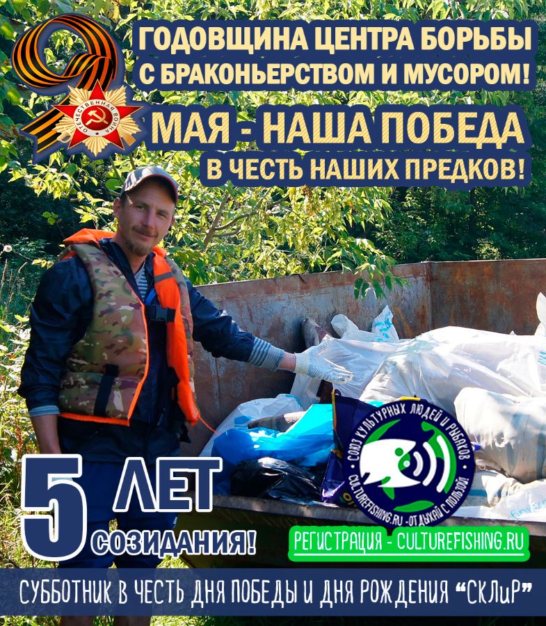 9 мая - День победы, 5-летие "Союза культурных людей и рыбаков", годовщина "Центра борьбы с мусором и браконьерством"!