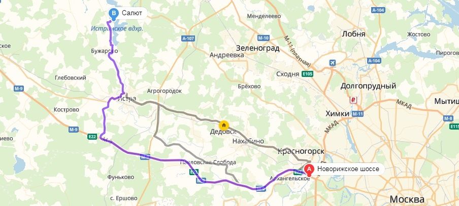 2. На автомобиле от Москвы едете по Новорижскому шоссе до города Истра, далее до указателя базы отдыха "Салют" в деревне Алехново.